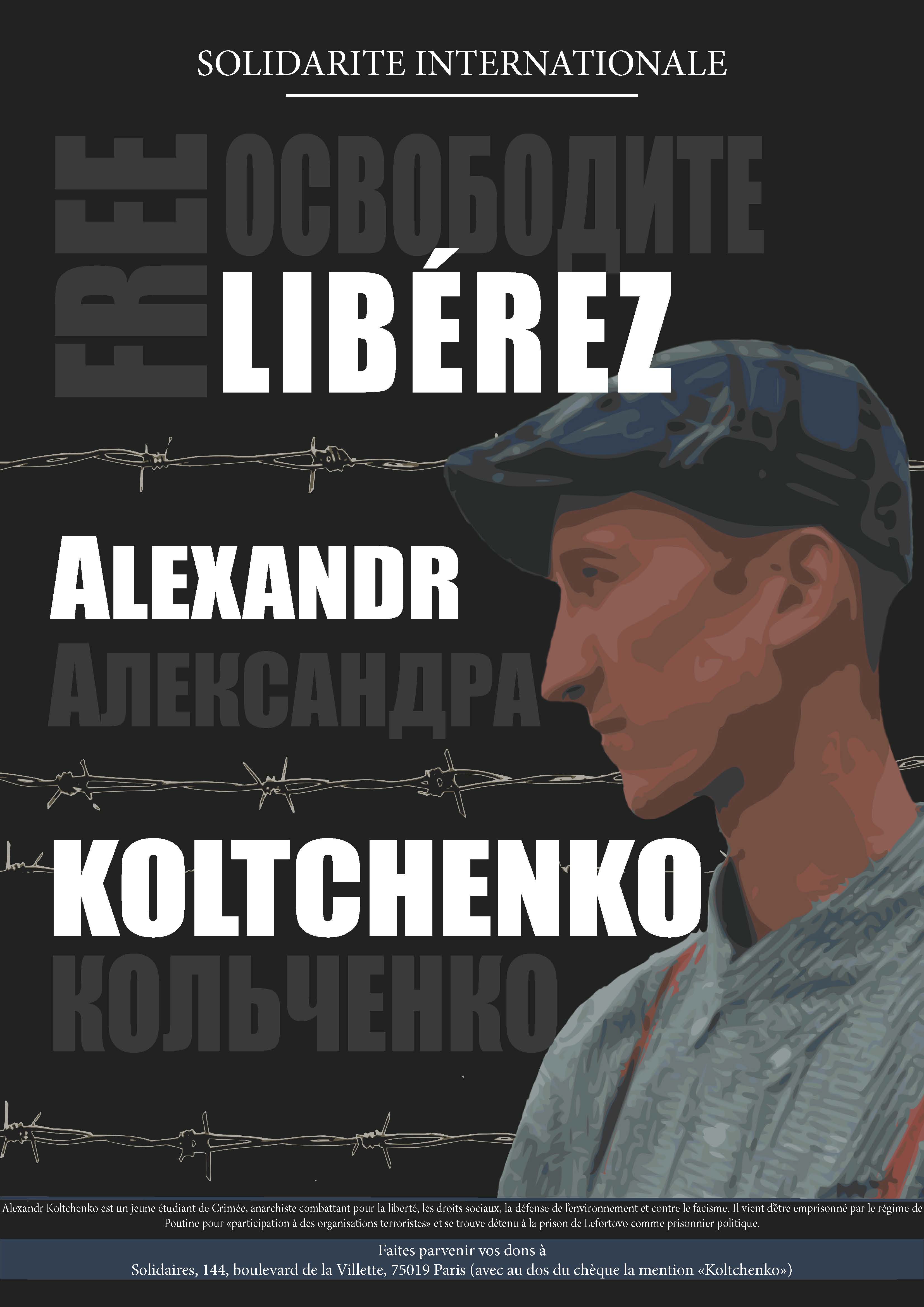 Pour la libération immédiate d’Alexandr Koltchenko et de ses compagnons, et pour les libertés démocratiques dans tous les pays, nos organisations syndicales et politiques appellent à rejoindre la manifestation antifasciste :