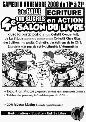 L’association "Ecriture en action" organise la 4e biennale de son salon du livre de lutte samedi 8 novembre 2008 de 10h à 21h à la "Halle au Sucre" dans le Vieux-Lille (entrée libre).