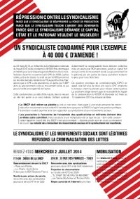 Cette condamnation, au-delà d’être injuste, dans la mesure où elle fait porter à un seul individu (militant syndical évidemment) la responsabilité d’une décision collective mise en œuvre par 800 personnes, serait un signal fort envoyé contre le mouvement social. Le gouvernement et le patronat, par une justice de classe, souhaitent instaurer la peur pour nous faire taire.