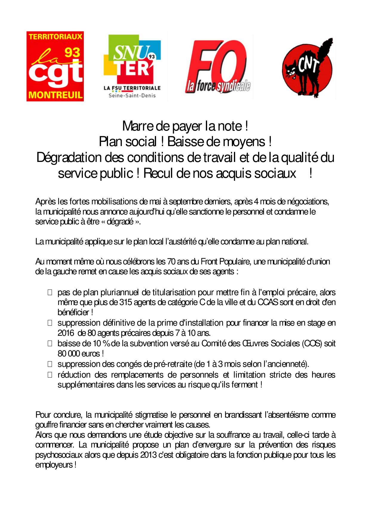 Au moment même où nous célébrons les 70 ans du Front Populaire. une municipalité d’union de la gauche remet en cause les acquis sociaux de ses agents :