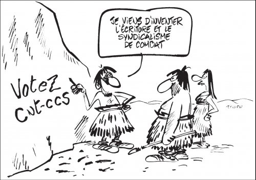 René Petillon avait offert deux dessins pour la CNT-CCS Archéologie. Le premier en 2003, pour la réalisation de tee-shirt « Irréductibles » au profit des différents collectifs d’archéologues en grève lors du mouvement contre la réforme de la loi patrimoine et l’ouverture de l’archéologie préventive à la concurence. Puis en 2009, l’appel au vote pour la CNT aux élections professionnelles à l’Institut Nationale de Recherches Archéologiques Préventives (INRAP) où la CNT-CCS est depuis représentative.