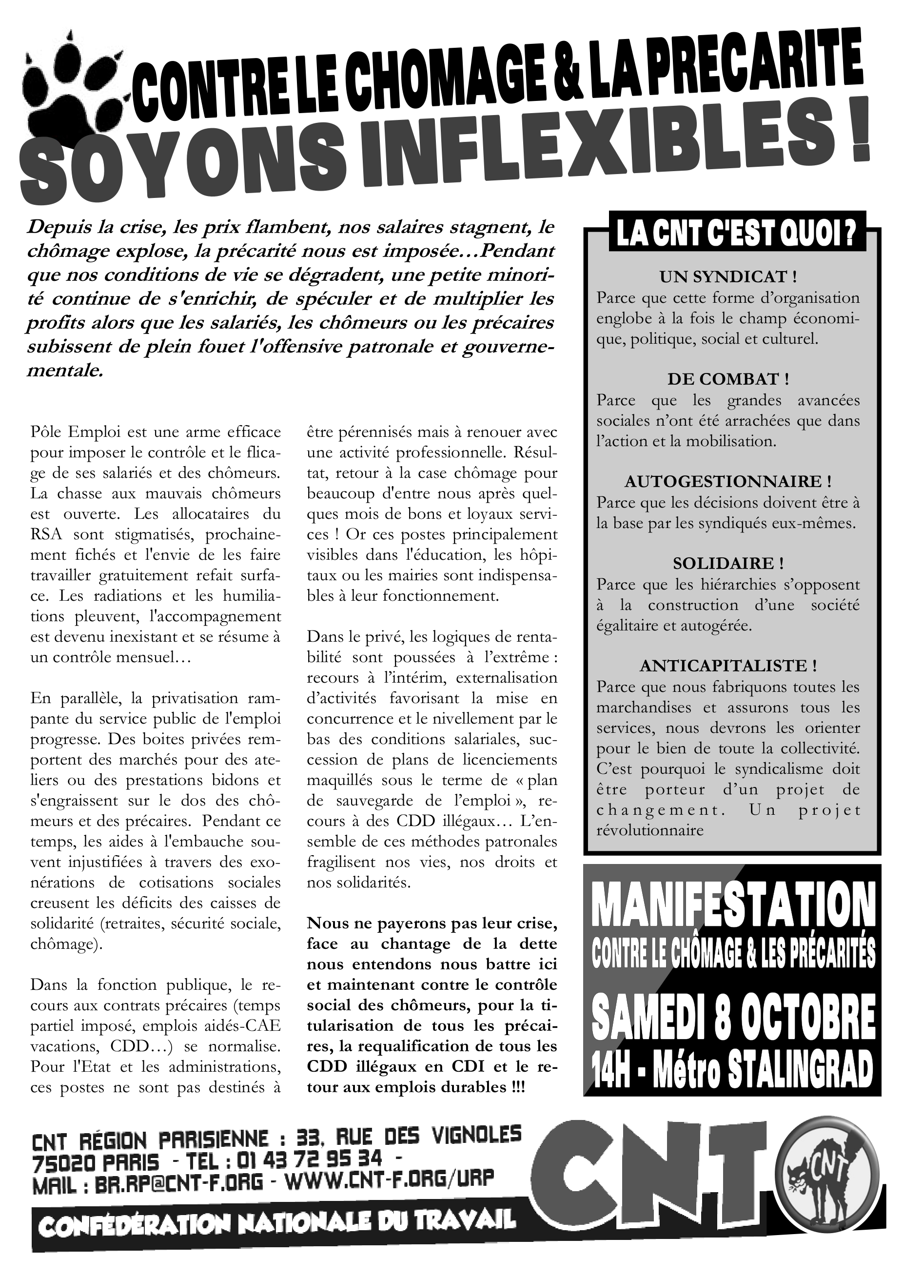 Abonnez-vous à la lettre d'information électronique mensuelle de la CNT en région parisienne pour être tenu au courant de nos activités.