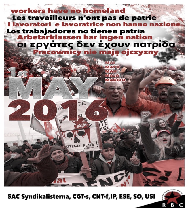 En France, les raisons de faire du 1er mai 2016 une journée de combat et de convergence des revendications de l’ensemble des travailleuses et des travailleurs sont nombreuses. Loi Travail, loi Macron, CICE, réductions drastiques des budgets alloués à la santé et au social, fermetures d’hôpitaux, de classes et d’usines, réforme de l’UNEDIC et statut des intermittents, stagnation des salaires... Partout la colère enfle face au désastre économique, politique, écologique et social qui frappe de plein fouet les classes populaires du pays. Le patronat dispose aujourd’hui d’un gouvernement enclin à réaliser ses rêves les plus fous. Tous les acquis historiques obtenus à travers les luttes sociales sont dans la ligne de mire de la classe dominante. L’extrême droite prospère à l’avantage de celles-ci en divisant les travailleurs. Il est donc plus que jamais nécessaire de retrouver l’espoir et de construire une dynamique de lutte.