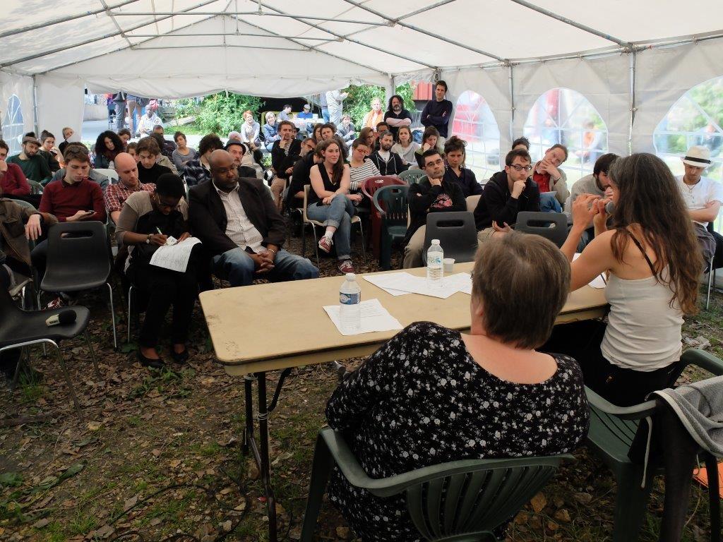 Nous avons accueilli au cours de ces trois jours près de 5 000 personnes, venues assister aux débats, projections, concerts, mais aussi visiter les stands des nombreux éditeurs ayant répondu présent. Preuve que les questions sociales, syndicales et politiques sont essentielles pour quantité de personnes : les débats ont été très suivis, avec des échanges fructueux entre les invités et le public. Nous avons ainsi pu parler de nos luttes, celles de People and Baby, de l’ESA (École spéciale d’architecture), des mineurs étrangers isolés, et avons également effectué un jumelage entre l’association des Pas Sages, qui regroupe les occupants du 33, rue des Vignoles, et la Casa Pumarejo de Séville, une maison occupée par différentes associations.