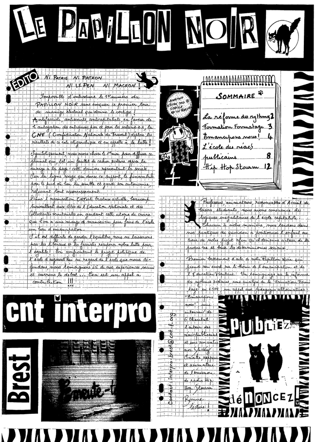 Impossible d’introduire le 1er numéro du Papillon Noir sans évoquer ce premier tour de manège électoral qui donne le vertige ! Antifasciste, antisexiste, anticapitaliste, en faveur de l’autogestion des entreprises par et pour les salarié•es, la CNT (Confédération Nationale du Travail) déplore les résultats de ce vote oligarchique et en appelle à la lutte !