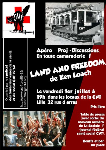 Le syndicat CNT des travailleur-euses de la santé et du social du Nord Pas-de-Calais ( sanso5962 cnt-f.org ) organise une soirée (apéro, proj’ et discussions en toute camaraderie) le vendredi 1er juillet à 19h dans les locaux de la CNT Lille, 32 rue d’Arras.