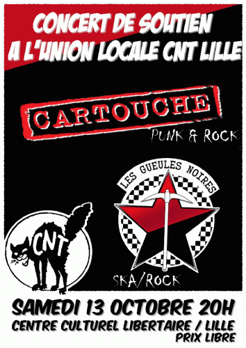avec Cartouche (punk & rock) et Les Gueules Noires (ska/rock) ainsi peut-être qu’un DJ en fin de soirée.