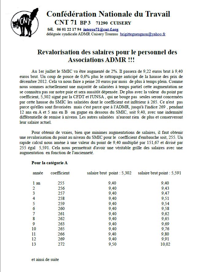 Revalorisation des salaires pour le personnel des Associations ADMR !!!