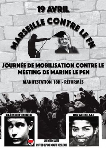 À l’occasion du dernier meeting de campagne du Front National qui aura lieu au Dôme de Marseille le mercredi 19 avril 2017, nous souhaitons réaffirmer, car nous sommes antifascistes, notre opposition totale à ce parti.