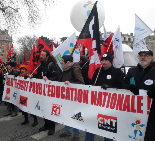 Vidéo et déclaration de la CNT éducation Nord Pas-de-Calais à l’occasion de la grève du 12 février 2013 contre les réformes Peillon :