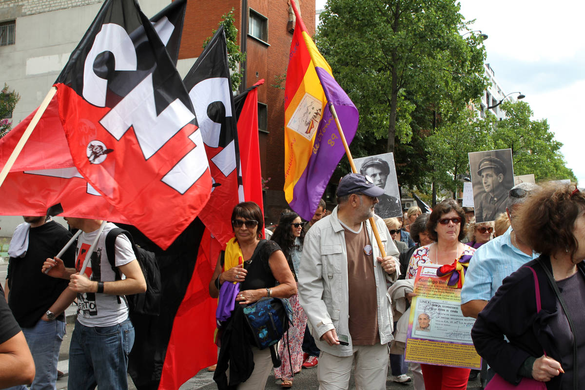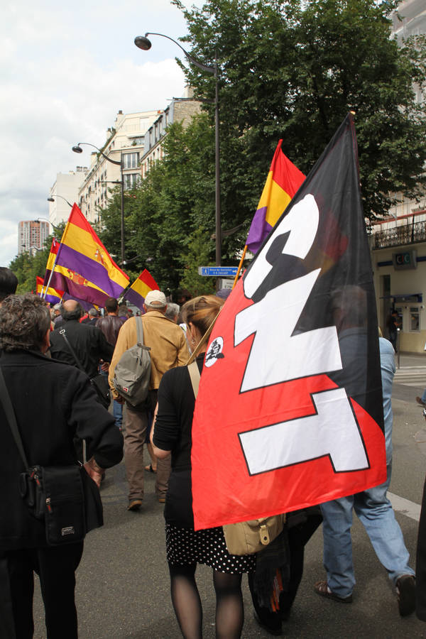 Le jour de la marche, la participation des camarades de la CNT de la région parisienne a été importante et remarquée, renforcée par des camarades de Lille, de Limoges et de Grenoble que nous remercions. Cette marche qui a réuni environ un millier de personnes venues de France et d’Espagne était constellée de drapeaux de la République espagnole et de la CNT.