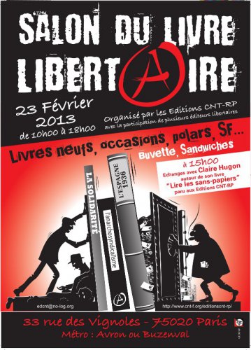Salon du livre libertaire de 10 heures à 18 heures le 23 février 2013 aux 33, rue des Vignoles 75020 Paris.
