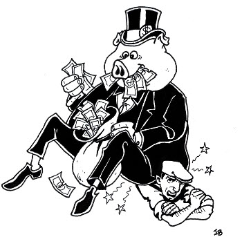 Mais l’arbre ne doit pas cacher la forêt : ce sont toujours les mêmes qui payent. Ce vaste hold-up sous nos yeux (pour l’instant estimé à plus de 3 000 milliards de dollars cumulés) a eu pour accélérateur l’arnaque des subprimes, mais il prolonge et camoufle l’institutionnalisation d’un vaste système de détournement des fonds publics vers la privatisation d’intérêts particuliers. En France (évasion fiscale annuelle estimée à 60 milliards d’euros) et ailleurs, de subventions diverses en allégements sociaux et exonérations fiscales multiples, de boucliers fiscaux en protection de paradis fiscaux, multinationales, entreprises et possédants du Capital se livrent à une extorsion multiforme, régulière depuis des années.