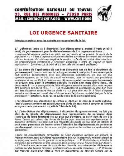 Cliquer sur la vignette pour lire le 4 pages confédéral ainsi que le décryptage la loi "urgence sanitaire et sociale" :