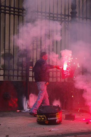 Mardi 13 avril, une délégation de la CNT 30 se rend au dépôt SNCF de Nîmes rencontrer les cheminots en grève depuis une semaine. Ambiance bon enfant, drapeaux rouges CGT au vent à l’entrée, les grévistes palabrent en attendant que la bouffe du midi soit prête. D’autres camarades s’en chargent. Les cheminots de Nîmes sortent d’une action où ils ont un peu bousculé le responsable local de la SNCF, qui refusait de dialoguer, au point de manquer de l’emplâtrer dans les murs de la gare. Comme ce sera le cas deux jours plus tard quand ils descendront sur Montpellier demander audience au responsable SNCF du Languedoc Roussillon, le même réponse leur sera faite : pas de négociation tant que la grève se poursuit. Pas le don de refroidir les ardeurs : demain, jeudi 15, c’est devant la préfecture du Gard que les cheminots en lutte et leurs fumigènes rappelleront qu’ils existent et en veulent.