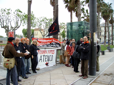 La Confederación Nacional del Trabajo (Francia) y el Comité Chiapas de Aude expresaron su solidaridad al pueblo de México en lucha, ayer en Perpignán, Plaza de Cataluña.