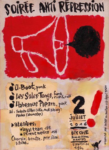 La CNT organise le samedi 2 juillet à partir de 14h une journée de soutien contre la répression du mouvement social de ces derniers mois. Tous les bénéfices seront reversés à la Legal Team.
