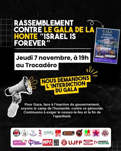 De nombreuses associations, dont la CNT, appelle à l’interdiction de la tenue de ce gala et à se rassembler pour dénoncer cet événement le jeudi 7 novembre au Trocadéro à 19h.