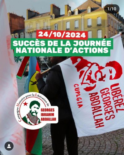 24 octobre 1984 - 24 octobre 2024 : grand succès de la journée de mobilisation pour exiger la libération de Georges Abdallah à l’appel de la Campagne Unitaire dont est membre la CNT.