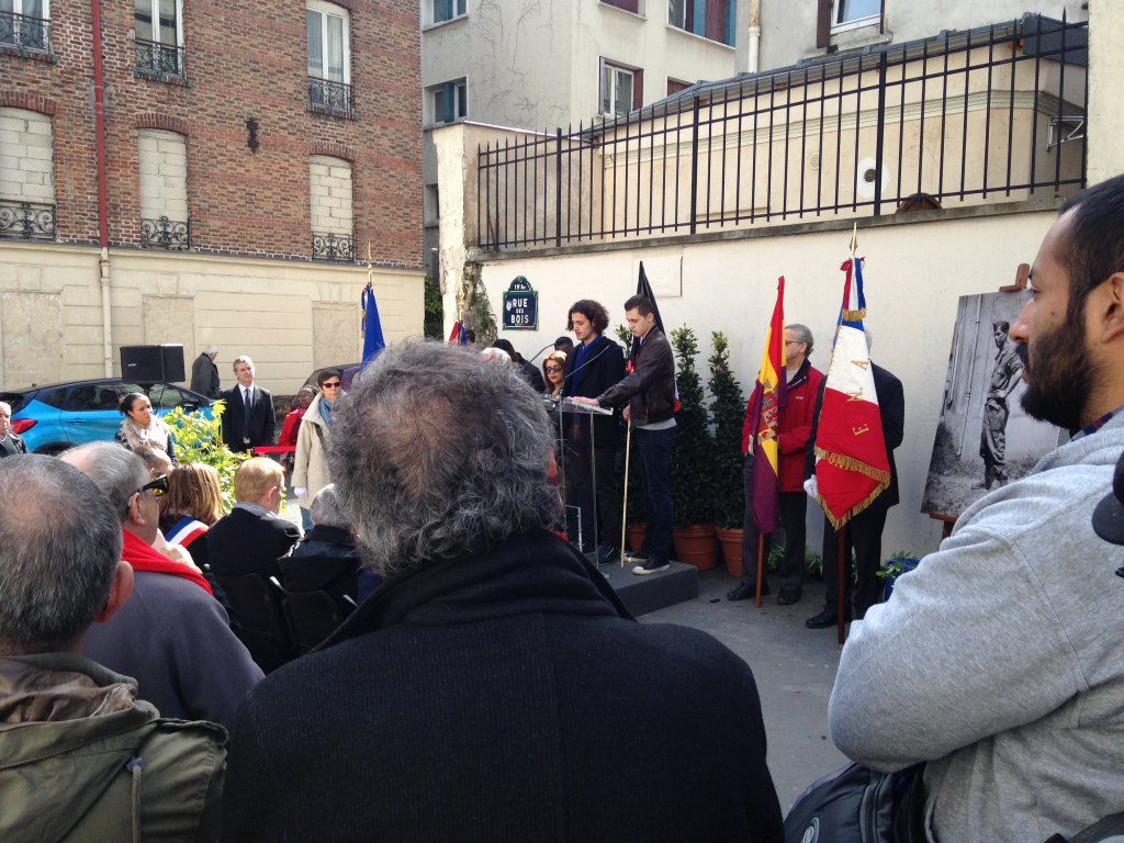 Le jeudi 14 avril dernier se déroulait la cérémonie de dévoilement de la plaque en hommage à Manuel Lozano [1] dans le XIXe au 34 rue des Bois, là où il vécut.