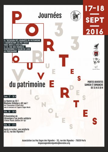À l’occasion des journées du patrimoine, l’association Les Pas Sages vous invite à visiter le 33, rue des Vignoles : discussions et salon du livre