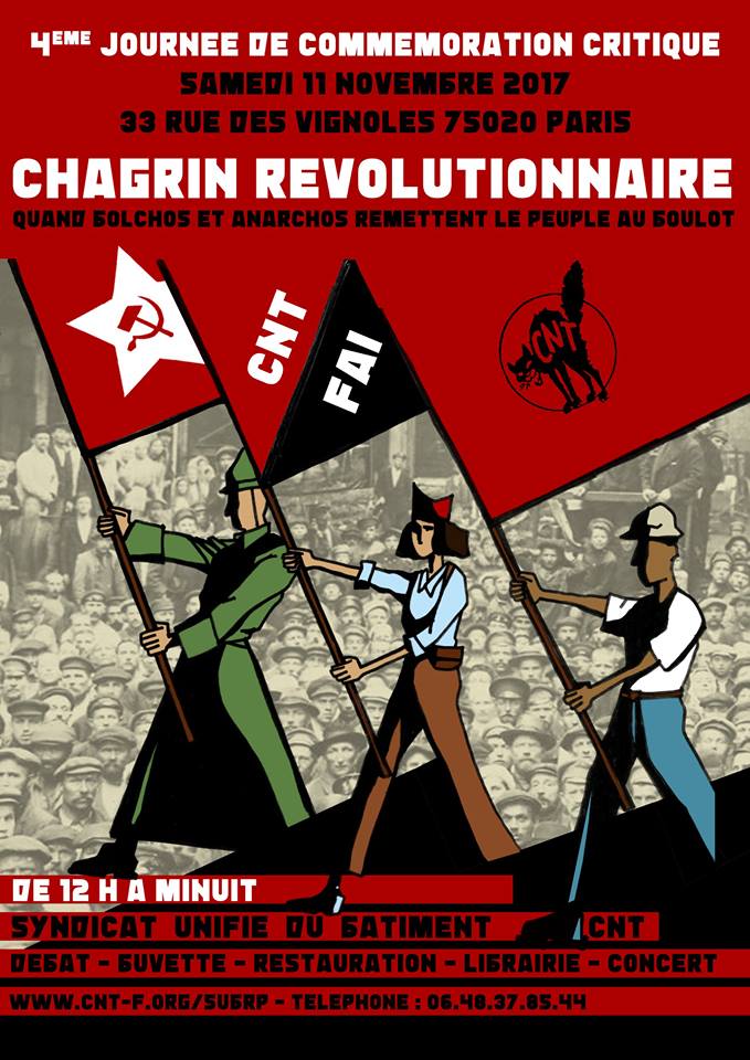 Et c’est bien de cette libération du Travail, sujet majeur du discours anticapitaliste, dont il sera principalement question lors de cette journée commémorative. Elle donne d’ailleurs le titre de cette journée : CHAGRIN RÉVOLUTIONNAIRE.