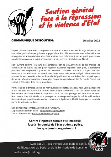 Communiqué CNT SEST LORRAINE 30 juillet 2023 :