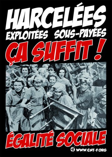 A travail égal, les femmes touchent 25% de moins que les hommes , elles sont les plus touchées par le chômage et la précarité et sont les premières victimes des temps partiels subis. Les différentes lois patronales notamment la loi El khomri facilitant les temps partiels, mettent les travailleuses au premier plan.