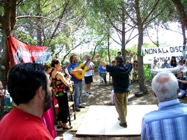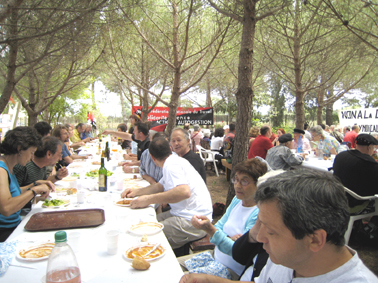 Cette année une fois de plus la fête rouge et noire du Roussillon, organisée par la CNT66, s’est tenue chez l’ami et compagnon Gaspar au lieu dit « villa Floréal ». Cette année électorale a fait que nous placions cette fête sous le signe de « les gouvernements changent, nous on ne change pas ». La lutte pour un futur sans exploitation et sans domination continue. Nous avons profité d’une météo favorable sous la magnifique pinède du lieu pour déguster l’excellent repas concocté par tous et toutes qui se sont donnés pour nous régaler. Nous nous sommes retrouvés pas très loin de 200 personnes, la majorité venant du département, mais il faut aussi signaler la présence, comme presque chaque année, de camarades des régions comme l’Hérault, l’Aude, le Gard, l’Ariège. A aussi fait acte de présence le petit groupe de vétérans de l’exil cénétiste de 1939. A noter également la présence de camarades anarcho-syndicalistes de Catalunyà sud (Girona, Hospitalet, L’Escala, Terrassa). Nous tenons tous à les remercier ici. Après un apéro sympa, et pour des raisons d’horaire, le grand guitariste Francisco Ortiz nous a offert avant le festin un récital, magnifique démonstration de son grand talent, ensuite il a accompagné son père ancien déporté du camp de la mort de Mathausen, qui nous a récité quelques poèmes très émouvants rappelant ces années terribles de la domination fasciste et nazie. Après le café le groupe des enfants « Ria-Pita » s’est installé pour une splendide représentation de musique et de danse sévillane et flamenca. Ensuite le groupe Catalunyà Nord Trovadors s’est magnifiquement produit avec un récital de musique populaire et classique qui a été également très apprécié et applaudi. Le programme s’est terminé par le groupe « Memoria » qui interpréta une série de chants de la période de la révolution et la guerre d’Espagne. Puis une petite surprise que certains ont pu entendre dans la grande salle : trois chansons montrant les débuts de la chorale polyphonique de chants révolutionnaires du monde entier dirigée par notre camarade harpiste Dominique Morichon. A signaler aussi les expos photos qui retraçaient les manifestations les plus marquantes auxquelles ont participé la CNT66 et qui eurent lieu entre les deux fêtes (juin 2006 à juin 2007). L’une sur les actions menées à la poste pour dénoncer la discrimination dont sont victimes aujourd’hui les syndicats CNT-PTT. Une autre sur l’action de solidarité dénonçant la répression et toutes les injustices dont sont victimes les peuples du Mexique en lutte, et plus précisément celles perpétrées à Atenco (sud de Mexico), et la dernière illustrait les journées parisiennes de l’i-O7 (Conférences syndicales internationales).