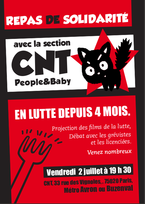 Repas de solidarité avec la section CNT People & Baby en lutte depuis 4 mois
