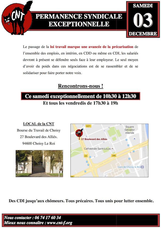 Le passage de la loi travail marque une avancée de la précarisation de l’ensemble des emplois, en intérim, en CDD ou même en CDI, les salariés devront à présent se défendre seuls face à leur employeur. Le seul moyen d’avoir du poids dans ces négociations est de se rassembler et de se solidariser pour faire porter notre voix.