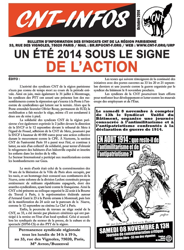 Abonnez-vous à la lettre d'information électronique mensuelle de la CNT en région parisienne pour être tenu au courant de nos activités.