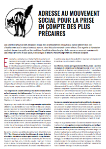Puisque les logiques à l’œuvre dans l’Éducation nationale se retrouvent dans tous les secteurs, nous appelons à un mouvement plus large, pour endiguer le processus global de régression sociale en cours. Nous considérons que le relèvement des seuils garantis à ceux et celles que l’économie relègue aux situations les plus précaires, constitue une condition nécessaire pour sécuriser l’ensemble des travailleur.euse.s et leur redonner des marges de liberté face à leurs employeurs, à l’État ou à leurs conjoints. Nous proposons donc un socle stratégique de revendications communes afin de relégitimer et renforcer les mécanismes de protection sociale qui constituent notre assurance collective, et de reprendre la main contre leur monde, en réaffirmant nos solidarités face à l’isolement dans lequel ils veulent nous installer.