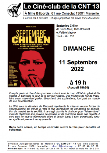 Le Ciné-club de la CNT 13 Dimanche 11 septembre 2022 Septembre (...)
