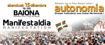 Il est temps que Paris reconnaisse qu’Euskal Herria existe. Cette reconnaissance doit nous doter de structures institutionnelles considérées en Europe comme ayant de l’avenir. L’Etat français venant cette année de ratifier la Charte européenne de l’Autonomie locale, nous lui adressons un message simple : Admettez que le Pays Basque existe ! : AUTONOMIA !!!