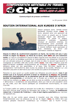 TRAVAILLEUSES ET TRAVAILLEURS FRANÇAIS.ES, KURDES, TURC.QUES, SYRIEN.NES : Unité contre le capitalisme et l’impérialisme !