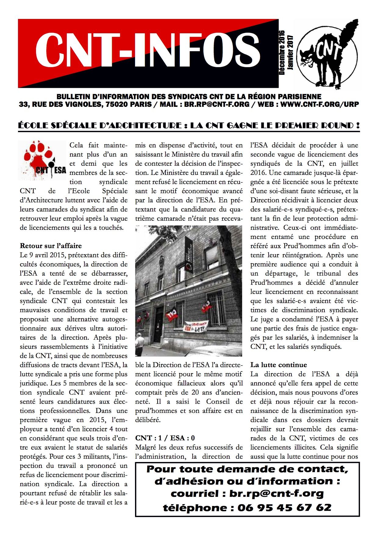 • École spéciale d’architecture : la CNT gagne le premier round !