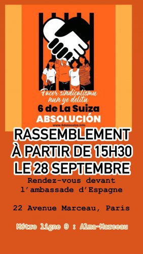 Nous vous avons déjà exposé le cas des “6 de la Suiza”, cette lutte syndicale pour laquelle 6 militantes sont condamnées, chacune, à trois ans et demi de prison et à 125 428 euros au bénéfice du patron de la boulangerie “Suiza”.