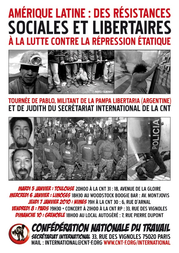 Tournée de Pablo, militant de la Pampa Libertaria (Argentine) et de Judith du secrétariat international de la CNT