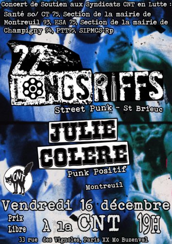 Ainsi nos camarades des sections syndicales CNT, les femmes de chambre de la Rolse nettoyage, les territoriaux de Montreuil et Champigny, et les réintégrés de l’École spéciale d’architecture exprimeront leur lutte et leurs revendications.