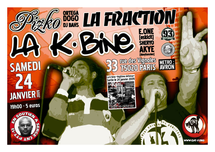 Le Samedi 24 Janvier 2009 dés 19h00. Au 33 rue des Vignoles 20éme Métro Avron. C’est toujours en soutien à Serge de la CNT PTT 13 et organisé par la fédé CNT PTT.
