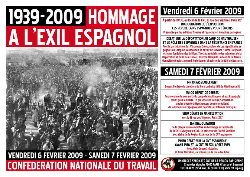 19h30 Débat sur La CNT espagnole avant 1936 et la CNT en Exil après 1939.