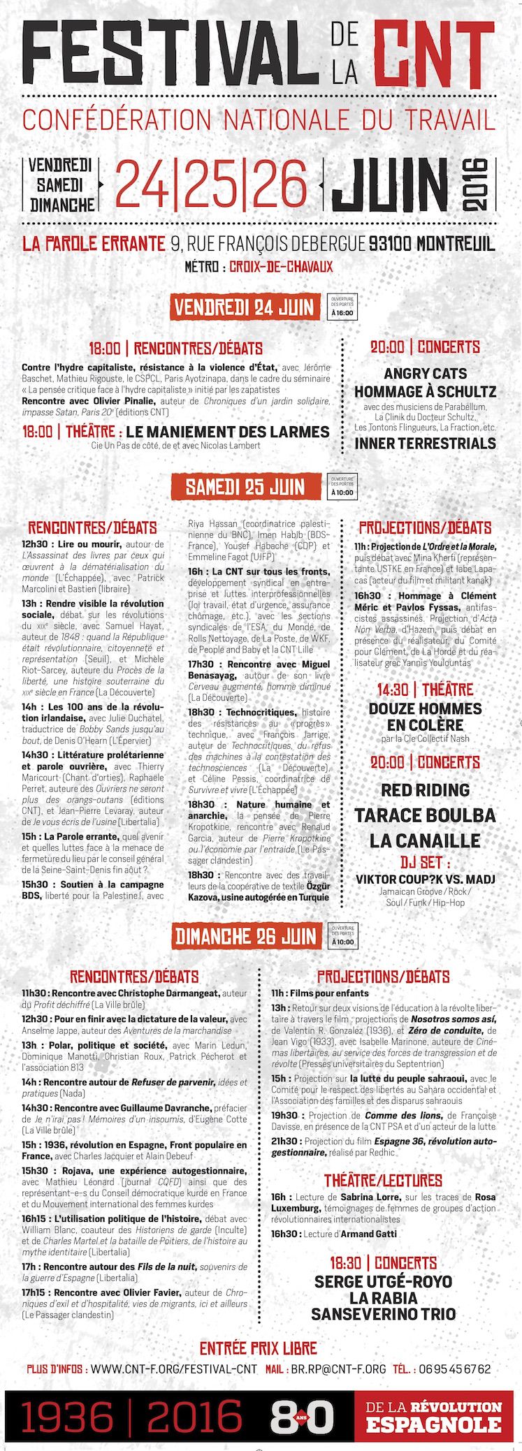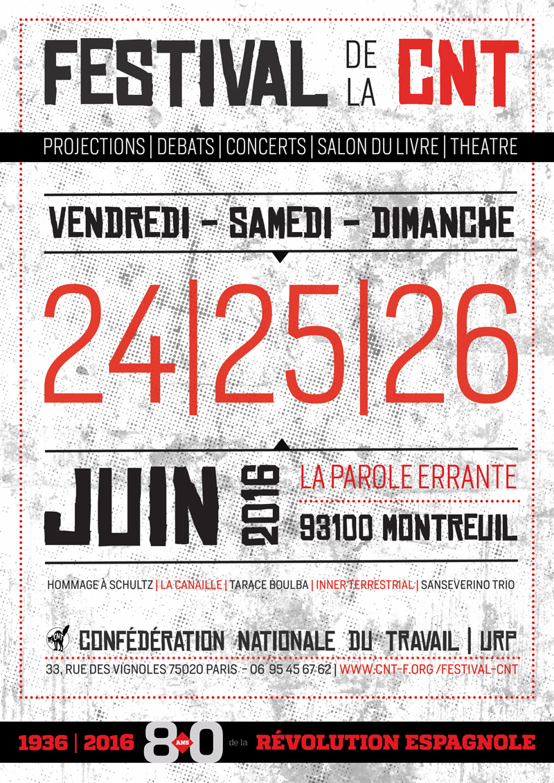 Cette année, le Festival CNT se déroulera les 24, 25 et 26 juin 2016.