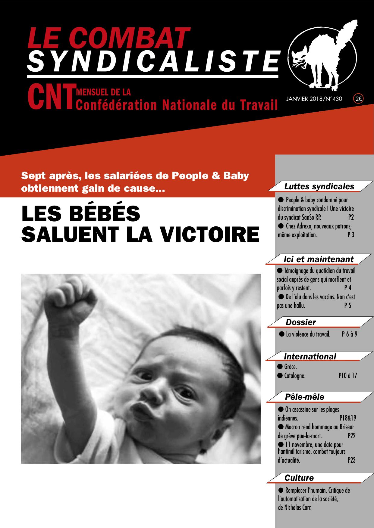 le Combat syndicaliste de janvier est téléchargeable en pdf dans la colonne de droite
