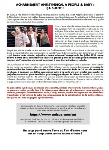 « Acharnement antisyndical à People & Baby, ça suffit ! »