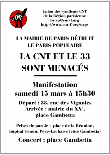 Abonnez-vous à la lettre d'information électronique mensuelle de la CNT en région parisienne pour être tenu au courant de nos activités.
