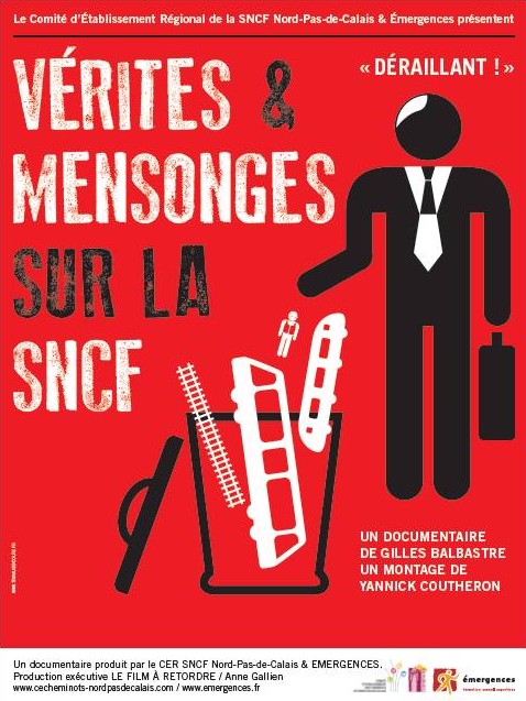 « Vérités et mensonges sur la SNCF » est un documentaire coproduit par le Comité d’Établissement Régional SNCF Nord Pas-de-Calais et le cabinet d’expertises « Émergences ». Il a été réalisé par Gilles Balbastre.