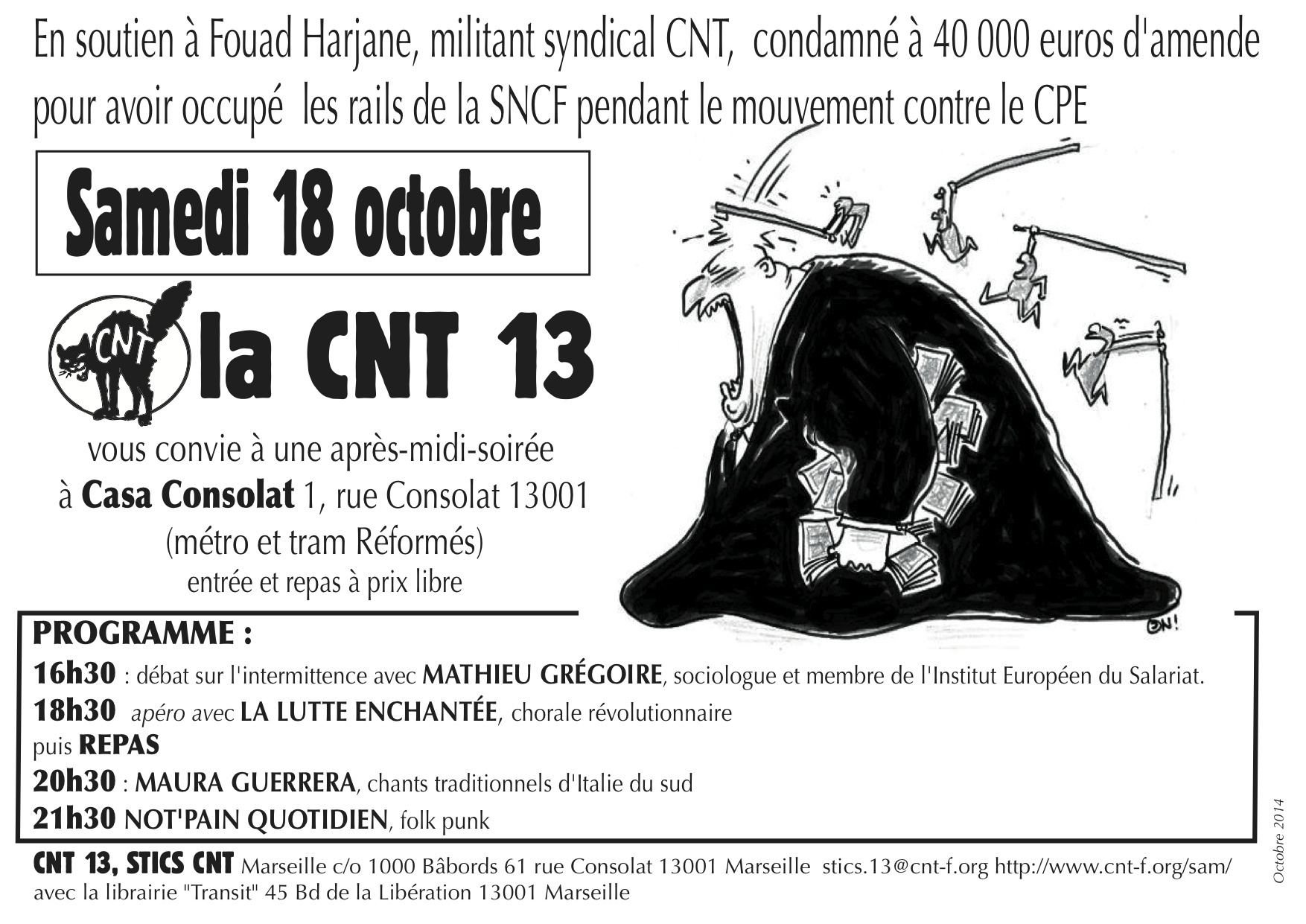 En soutien à notre camarade Fouad, la CNT 13 organise un après-midi et une soirée le 18 octobre à Marseille.
