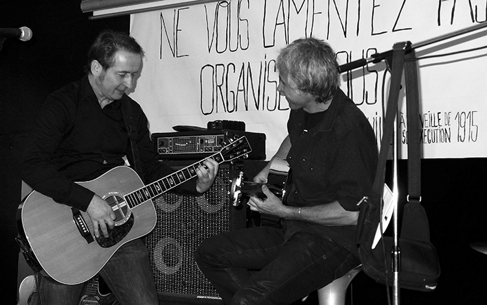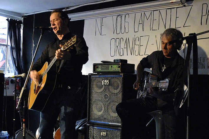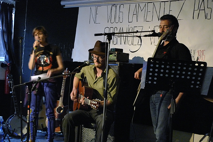 Une quinzaine de musiciennes et musiciens se sont succédé sur scène pour interpréter, en français, des chansons de Joe Hill à l’occasion de la sortie du livre Joe Hill. La création d’une contre-culture ouvrière et révolutionnaire aux États-Unis de Franklin Rosemont, aux éditions CNT-RP.