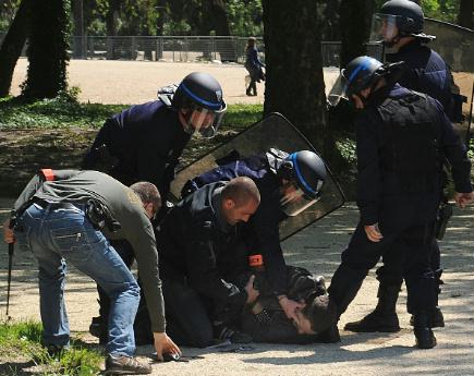 Coups, projection au sol, coups de bottes, je me retrouve à terre avec bientôt 6 gars sur le paletot avant que je comprenne qu’ils s’agissaient de BACeux et non de fachos !